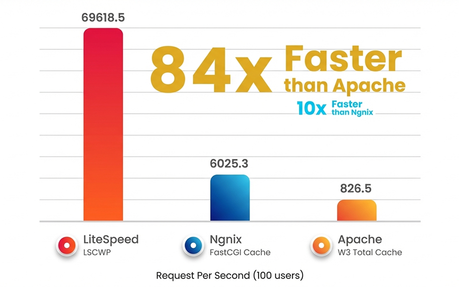 Various benchmark test has shown that WordPress running on LiteSpeed web server is proven to be the fastest performing web server optimized for WordPress available.